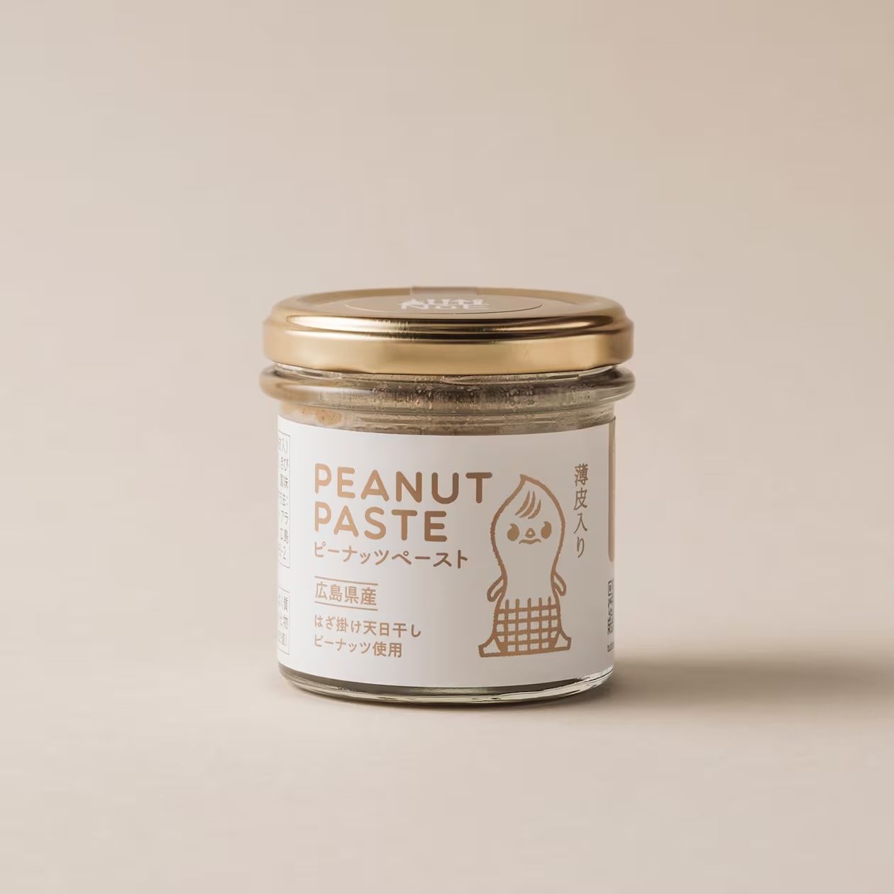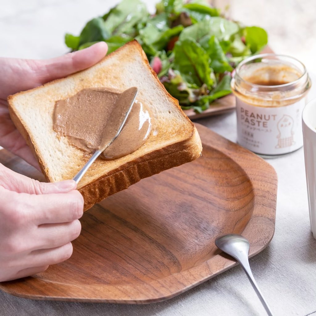 「甘味、旨味、香ばしさ、濃厚さ等、落花生本来の味が楽しめると好評のピーナッツペースト。 ポリフェノールを含んだ薄皮ごとミキシングしており、健康のことを考えて落花生(ちばはんだち)、きび糖、藻塩のみでつくりました。」
